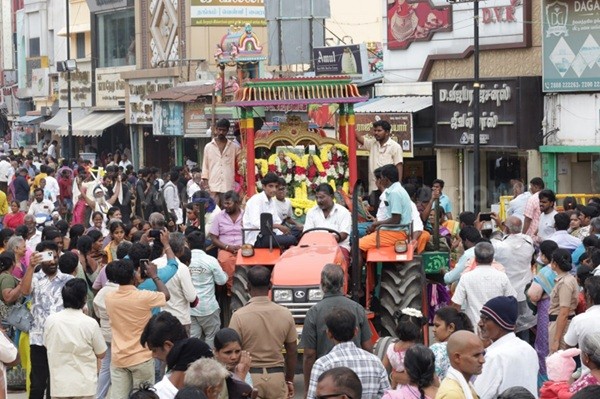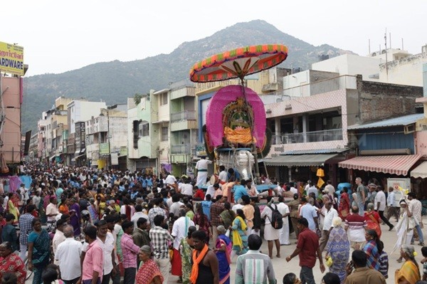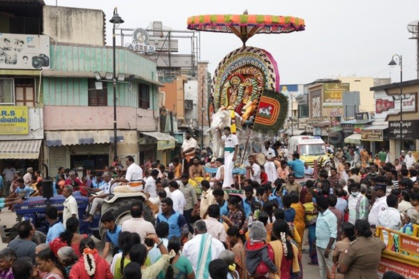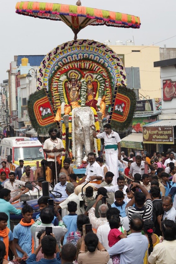 On the 6th day of the Tirukkarthigai festival celebrated grandly in the Thiruvannamalai Lord Arunchaleswarar temple (29th November), the deity of Lord Chandrasekhara was taken on a procession on the carriage of elephant along with th deities of the 63 nayanmars or Saivite Saints along with Nalvar Sekkizhar.