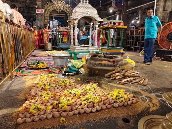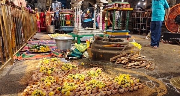 At the Annamalaiyar Temple in Tiruvannamalai, the third day of the Karthigai Deepam festival was marked by special yagasala rituals and the sacred 1,008 Shankha Abhishekam performed in front of the sanctum. The beautifully arranged flowers and offerings added to the spiritual vibrance of the celebrations.
