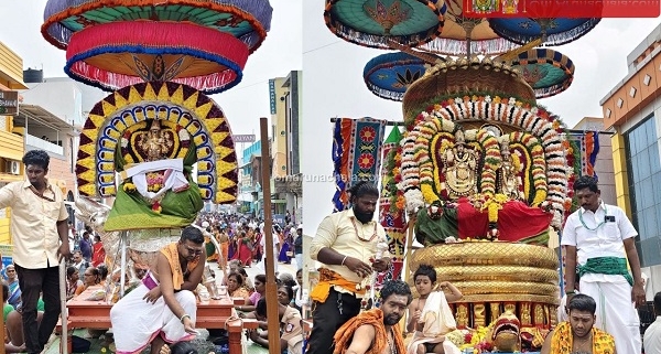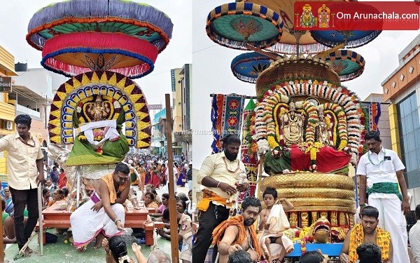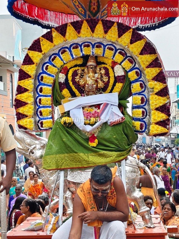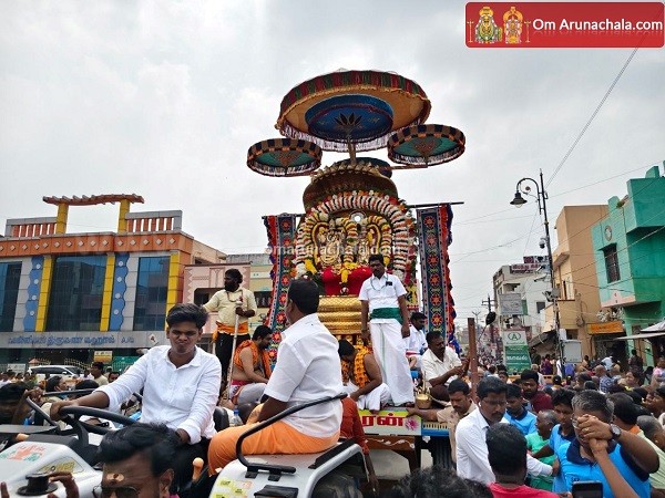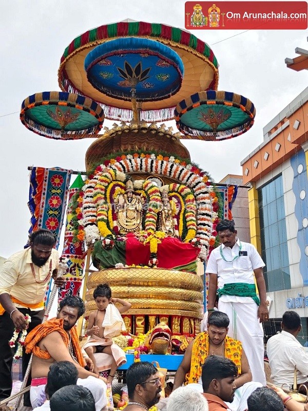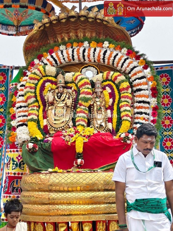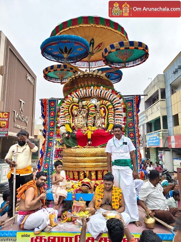 On the 4rd day of the festival, the the deities were then taken on a procession from the Thirukkalayana Mandapam, along the Mada Veedhis with the deities of the Lord Chandrasekarar.