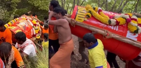Devotees Carry 300-Kg Maha Deepam Kopparai Up Annamalaiyar Hill for Karthigai Deepam