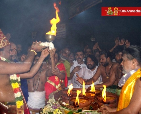 0 Comments/in Deepam 2025, Frontpage Article, News, News & Events/by omarunachalaThe sacred Bharani Deepam was lit early this morning at the Arunachaleswarar Temple as part of the Karthigai Deepam festival 2025. Special Abishegam and Dheeparathanai were performed after the temple opened. At 3:30 AM, the Bharani Deepam was lit inside the Lord’s shrine. A yagam was conducted at the Artha Mandapam, where twenty Bharani Deepams […]