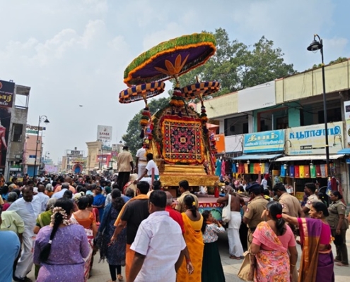 0 Comments/in Deepam 2025, Frontpage Article, News, News & Events/by omarunachalaNight On the 3rd day of the festival, during the night, the special Ratha vilakku Deeparadhanai and Panchamuga Deeparadhanai were performed for the deities of Lord Priyanayakar, His Consorts Uma and Kandhar, Lord Vinayaka, Lord Subramanya, with His Consorts Valli and Deivanai, and Goddess Ambal in the form of Lalthambigai, and Lord Chandkeswarar. After the […]