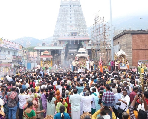 0 Comments/in Deepam 2025, Frontpage Article, News, News & Events/by omarunachalaThe Thirukarthigai Deepam festival began in Thiruvannamalai with grand celebrations as thousands of devotees gathered around the Annamalaiyar Temple. On the first day of the festival, the Panchamurthi idols were taken out in a special alankaram, carried in beautifully decorated silver vimanas. Devotees thronged the Mada Streets to witness the sacred procession and receive the […]