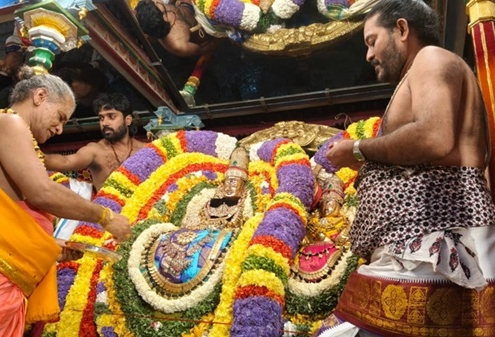 0 Comments/in Deepam 2025, Frontpage Article, News, News & Events/by omarunachalaOn the first day of the festival, the Panchamurthys were carried on a procession on Mooshikam (mouse), Peacock, Silver Ahikara Nandhi, Hamsam and Simham (lion) respectively around the temple corridor streets offering Darshan to a large crowd of devotee