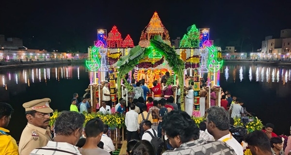 At the sacred Tiruvannamalai Arunachaleswarar Temple, the divine Iyankkulathil Arulmigu Sri Chandrasekar Theppakulam Utsavam will be held tonight at 9 PM.